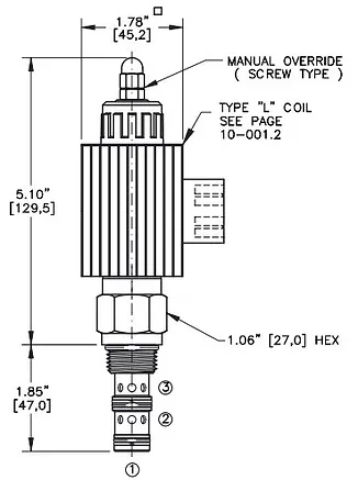 This unit is an electro-hydraulic, proportional, screw in cartridge style, pilot operated, sliding spool type, high pressure reducing and relieving control valve